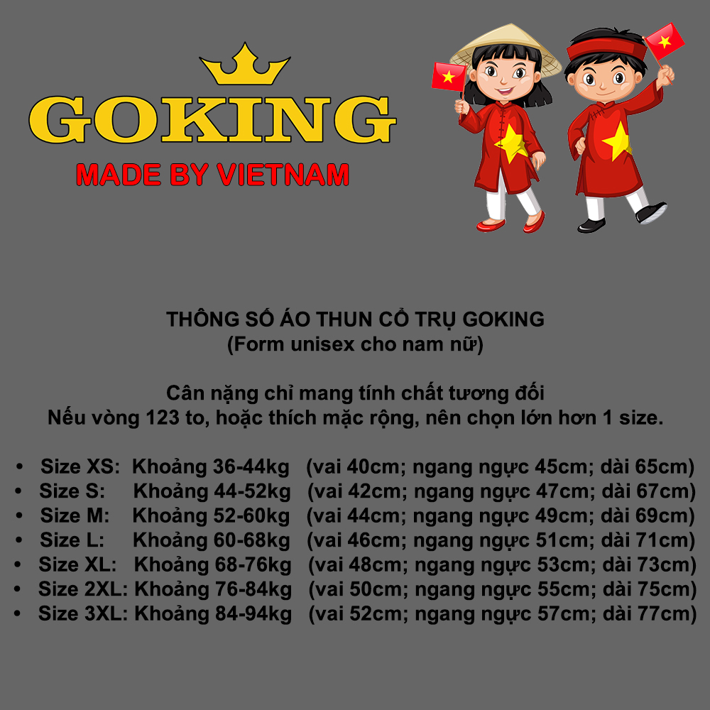- Made in Vietnam: Cắt may ủi đóng gói bởi những con người Việt Nam chăm chỉ, cẩn thận, tay nghề cao. Goking hi vọng được bạn ủng hộ “người Việt xài hàng Việt”.