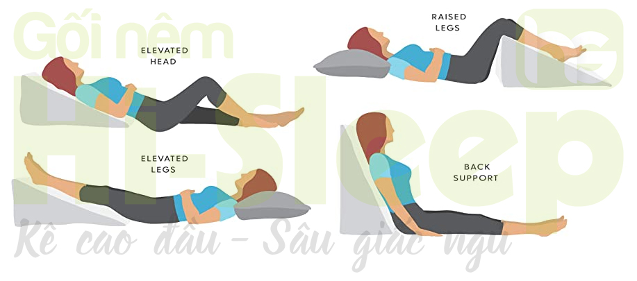 Gối nêm chống trào ngược dạ dày người lớn Hi-Sleep loại 1 lớp 70x60x14cm giúp giảm trào ngược, viêm xoang, nghẹt mũi, ho đêm, copd, ngáy, ngưng thở khi ngủ