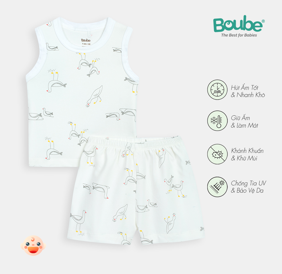 Bộ quần áo ba lỗ hoạ tiết thiên nga Boube - Chất liệu Petit mềm mại thoáng mát - Fullsize cho bé từ 0 đến 24 tháng