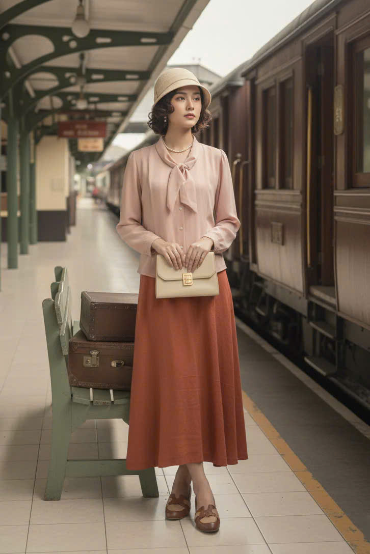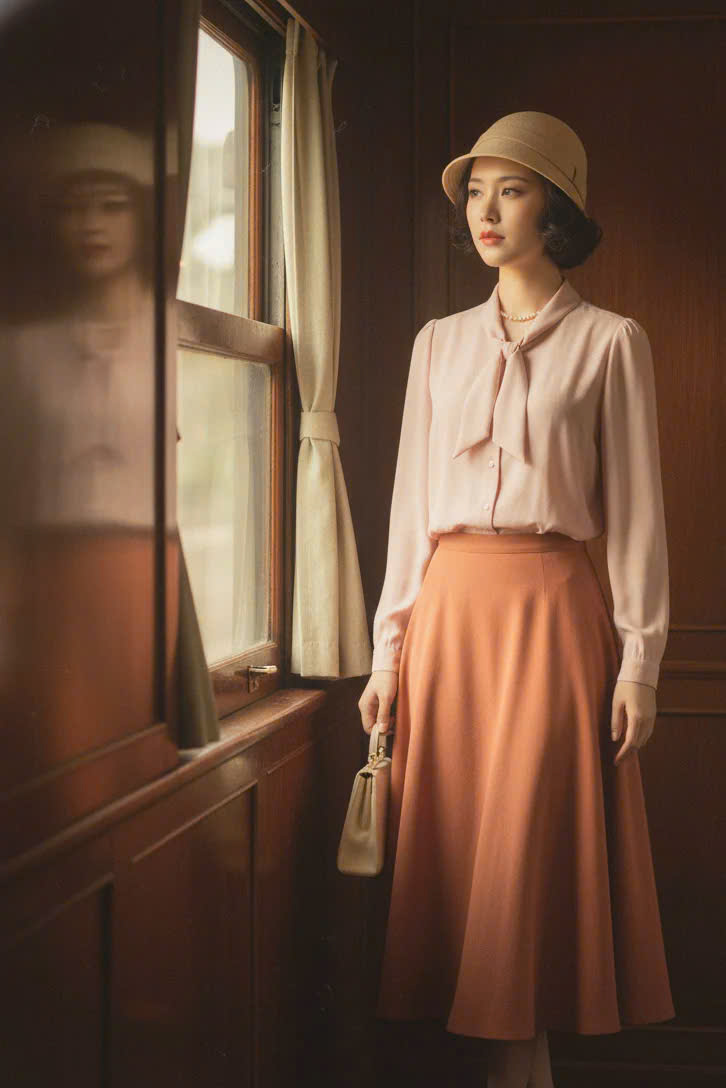 Chiếc áo crepe màu da ấy, ta luôn chọn trong những ngày lòng vương vấn những hoài niệm. Những ngày ấy, ta thả đầu óc mình lãng đãng theo những thước phim trong đó ta hoá thân thành nhân vật đi tìm về những dấu yêu. Vạt sáng lướt qua tàu, gió nhẹ lay khung cửa, và trong ánh vàng mơ hồ ấy, ta thấy mình, người đàn bà của những năm ba mươi, biết mỉm cười giữa ồn ào, biết giữ chút dịu dàng trong thế giới đang thay đổi.