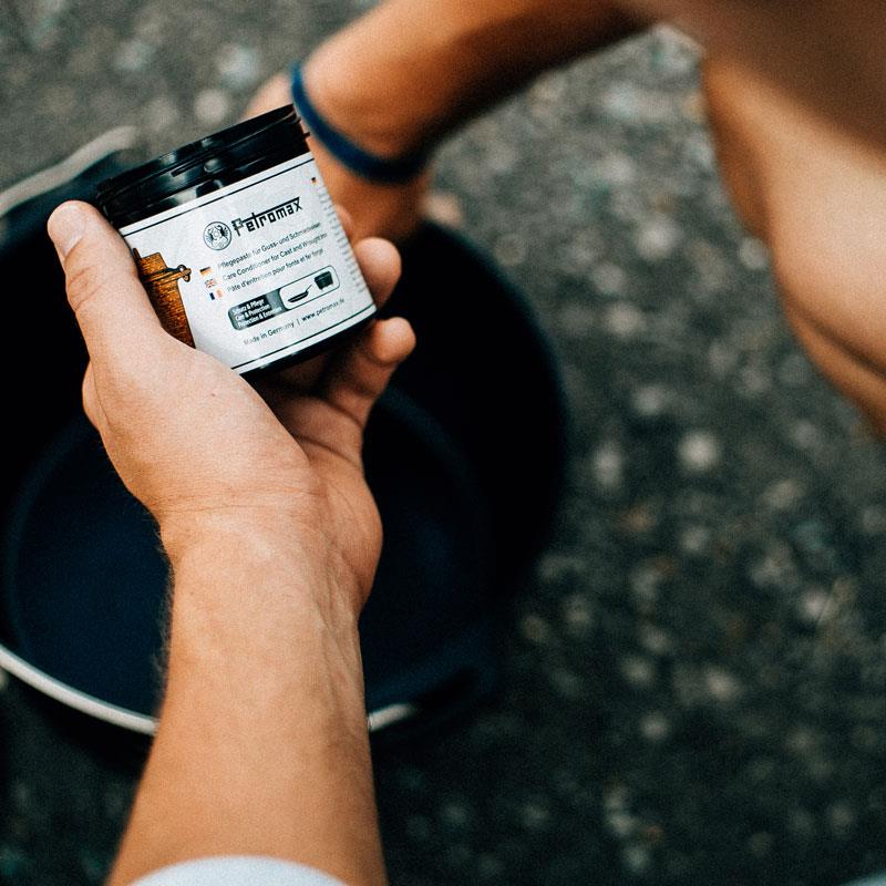 Xi vệ sinh bảo quản bếp củi Petromax được làm bằng các thành phần tự nhiên bảo vệ bề mặt đã được xử lý trước (lớp hoàn thiện dày dặn) của bếp củi Petromax và bất kỳ dụng cụ nấu nướng bằng gang nào khác. Nó phù hợp lý tưởng để làm xử lý cho các bề mặt của bếp củi.