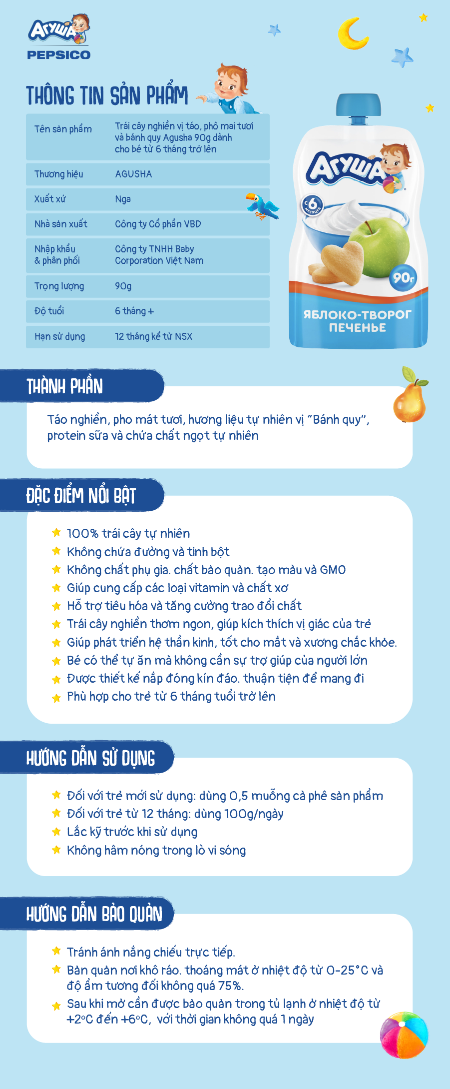 Trái cây nghiền vị táo, phô mai tươi và bánh quy Agusha 90g dành cho bé từ 6 tháng trở lên