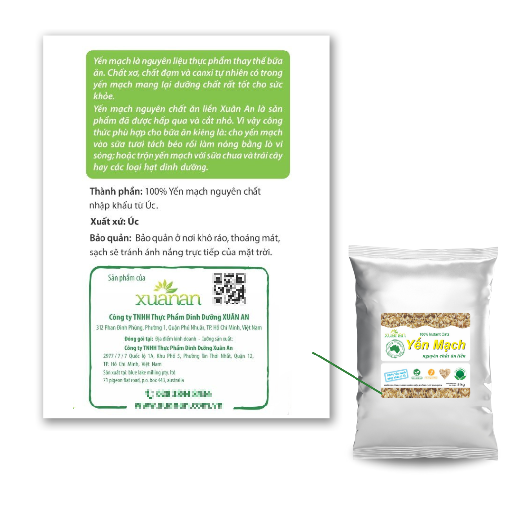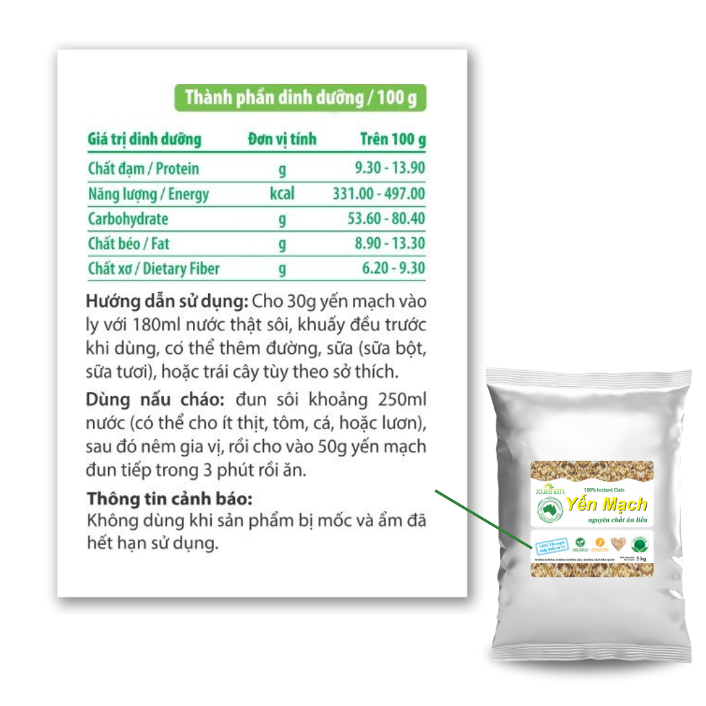 100% Yến mạch nguyên chất Xuân An (Instant Oats) được nhập khẩu từ ÚC.