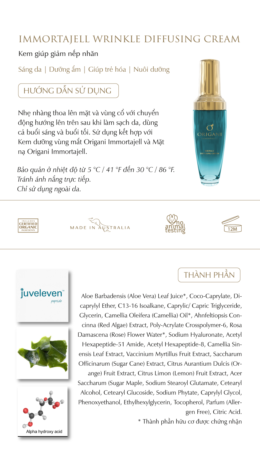 Tên sản phẩm: Origani Immortajell Wrinkle Diffusing Cream