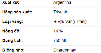 Giới thiệu Rượu vang trắng Argentina, Trivento, Reserve Chardonnay