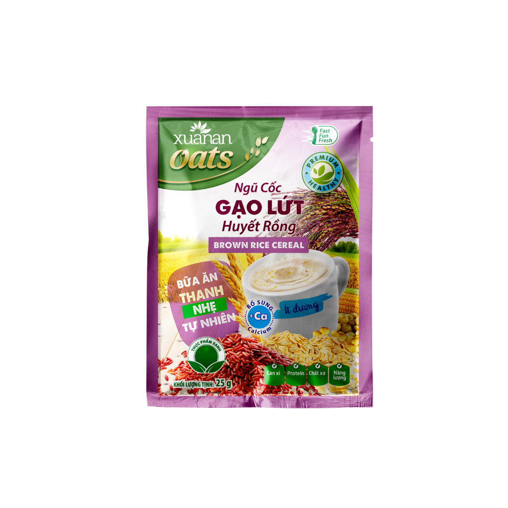 Ngũ cốc GẠO LỨT Huyet rong là thức uống thơm ngon bổ dưỡng, được làm từ gạo lứt, yến mạch và nhiều loại ngũ cốc. Sản phẩm được bổ sung thêm can xi và sử dụng ít đường. Vitamin, khoáng chất, chất xơ tự nhiên giúp hấp thu dinh dưỡng tốt và thanh lọc cơ thể.