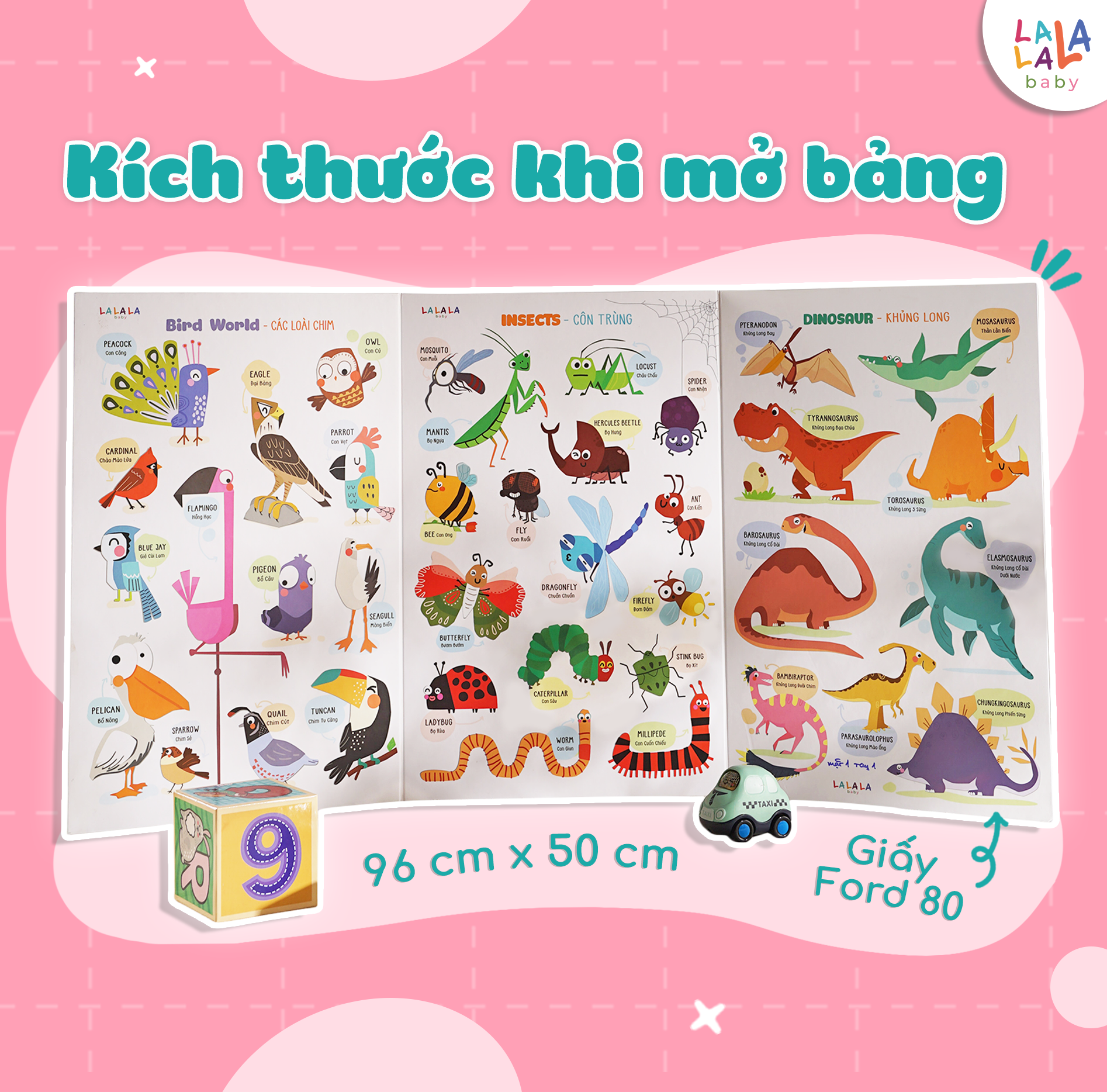 Chỉ cần một bảng gấp, bé đã có thể học được bảng chữ cái tiếng Anh, tiếng Việt, số đếm từ 1 tới 10. Những màu sắc cơ bản, những hình khối tròn, vuông,... hay đến những loại củ quả bé ăn mỗi ngày đều nằm trong bảng gấp chờ bé khám phá.