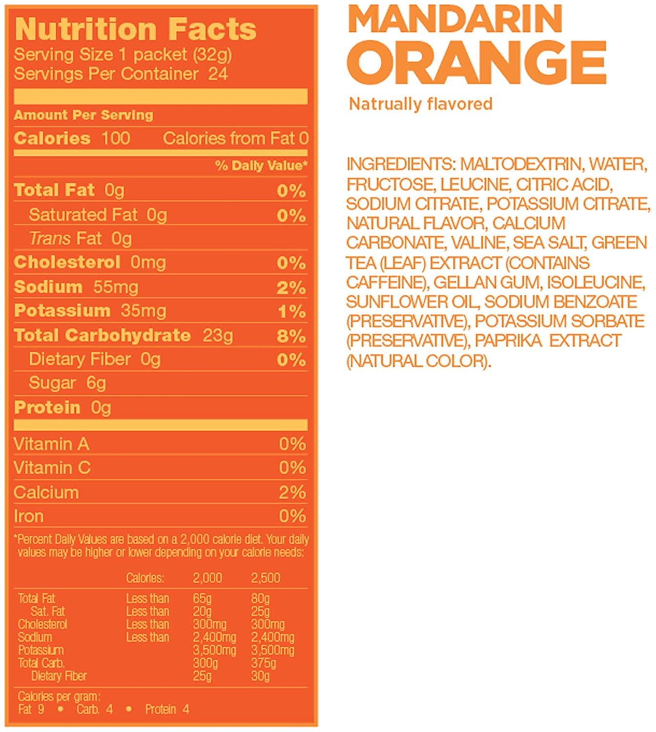 Khi cơ thể mất nước mà được bổ sung ngay một gói GU Energy Gels mang hương vị thanh mát, chua ngọt và đầy sảng khoái của Mandarine Orange. Bên cạnh đó, thành phần Gels còn chứa muối biển và trà xanh, mang lại sự tỉnh táo cần thiết và đánh tan cơn buồn ngủ uể oải ngay lập tức.