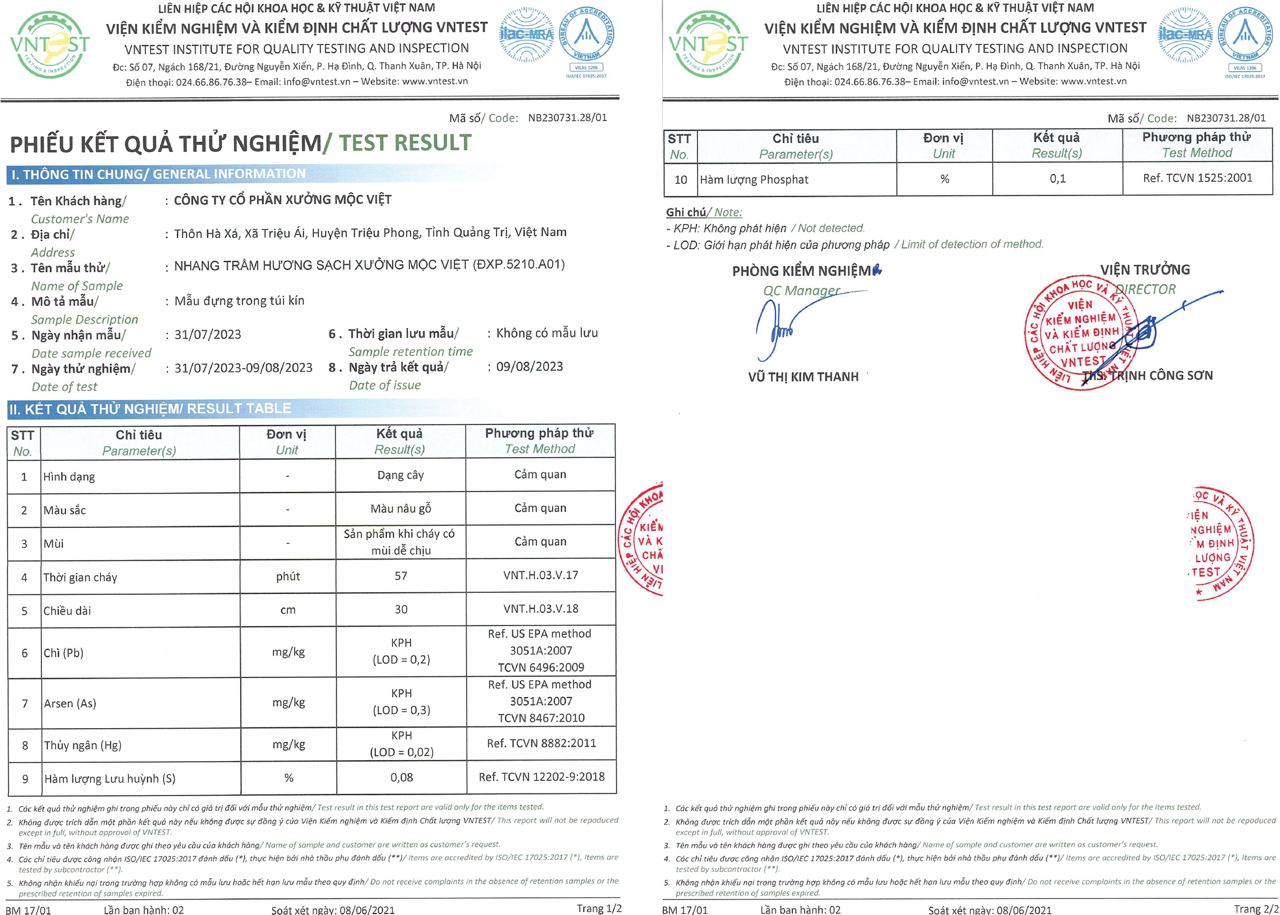 Nhang trầm Xưởng Mộc Việt đc làm từ bột trầm tự nhiên trong quá trình tiện vòng tại xưởng gia công vòng trầm, được làm từ 95% bột gỗ trầm hương, 5% bằng bột cây Bời Lời để kết dính.KO pha keo làm cuốn tàn, KO pha chất d.ẫ ch.á.y, KO pha chất tạo mùi hương, nên mùi trầm dịu nhẹ thoang thoảng chứ KO thơm nồng đậm như nhang ngâm tẩm hương như bên ngoài. Vì vậy khi đốt, khói nhang ít gây cay mắt và ảnh hưởng xấu đến sức khỏe của mình kể cả cho trẻ em và phụ nữ mang thai, lưu hương trong phòng vài giờ, mùi hương dịu nhẹ