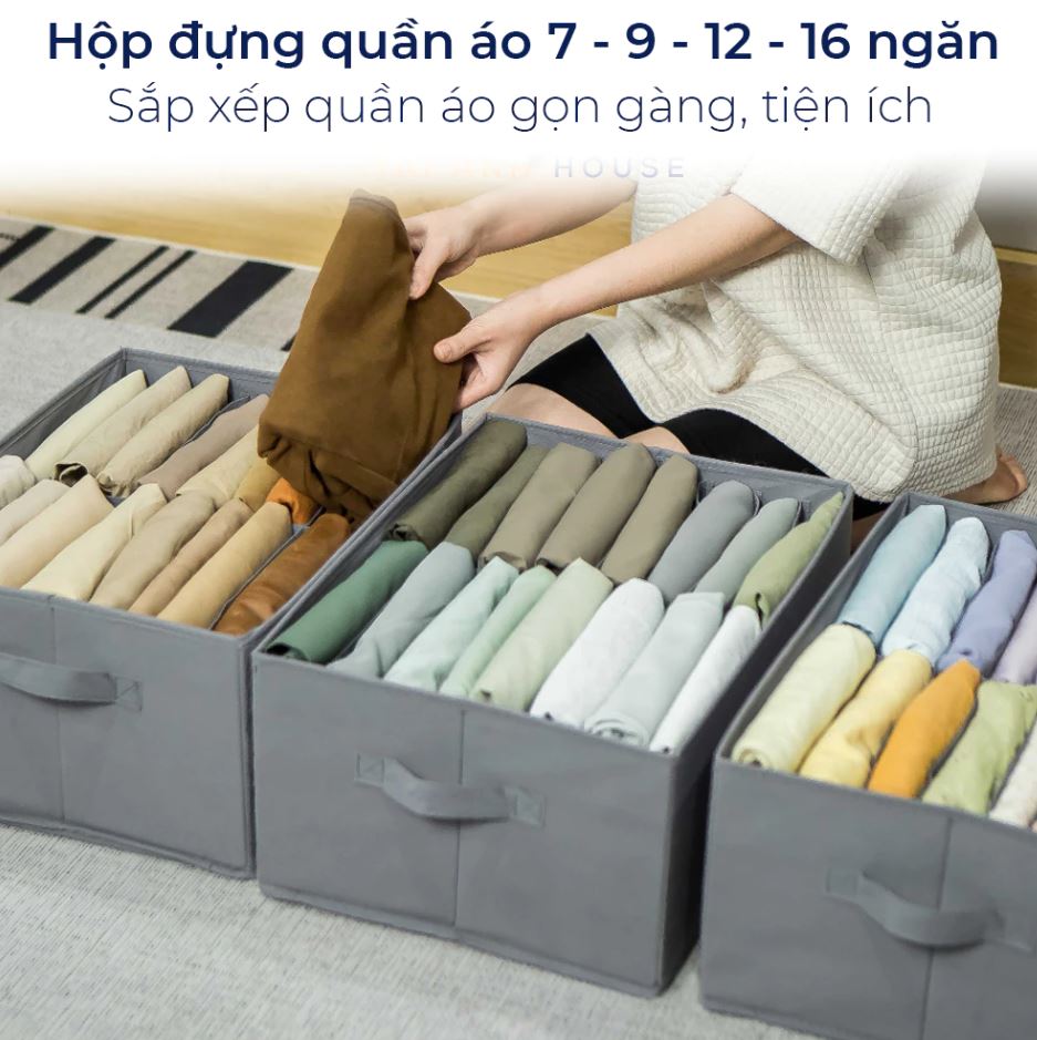 Hộp vải đựng đồ chia ngăn HQ4 - Hộp đựng quần áo chia 9 ngăn, 16 ngăn gấp gọn chính hãng