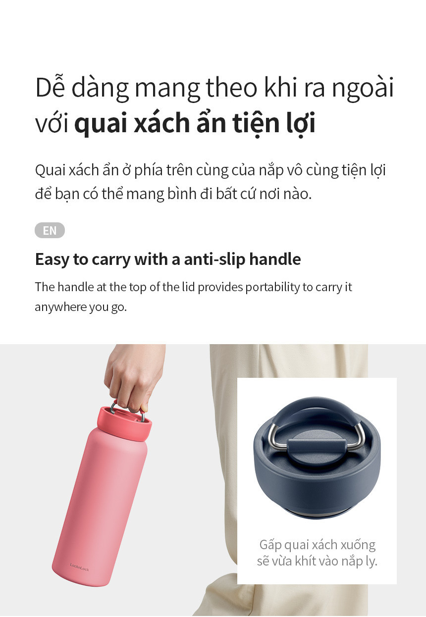 Quai xách ẩn ở phía trên cùng của nắp vô cùng tiện lợi để bạn có thể mang bình đi bất cứ nơi nào.