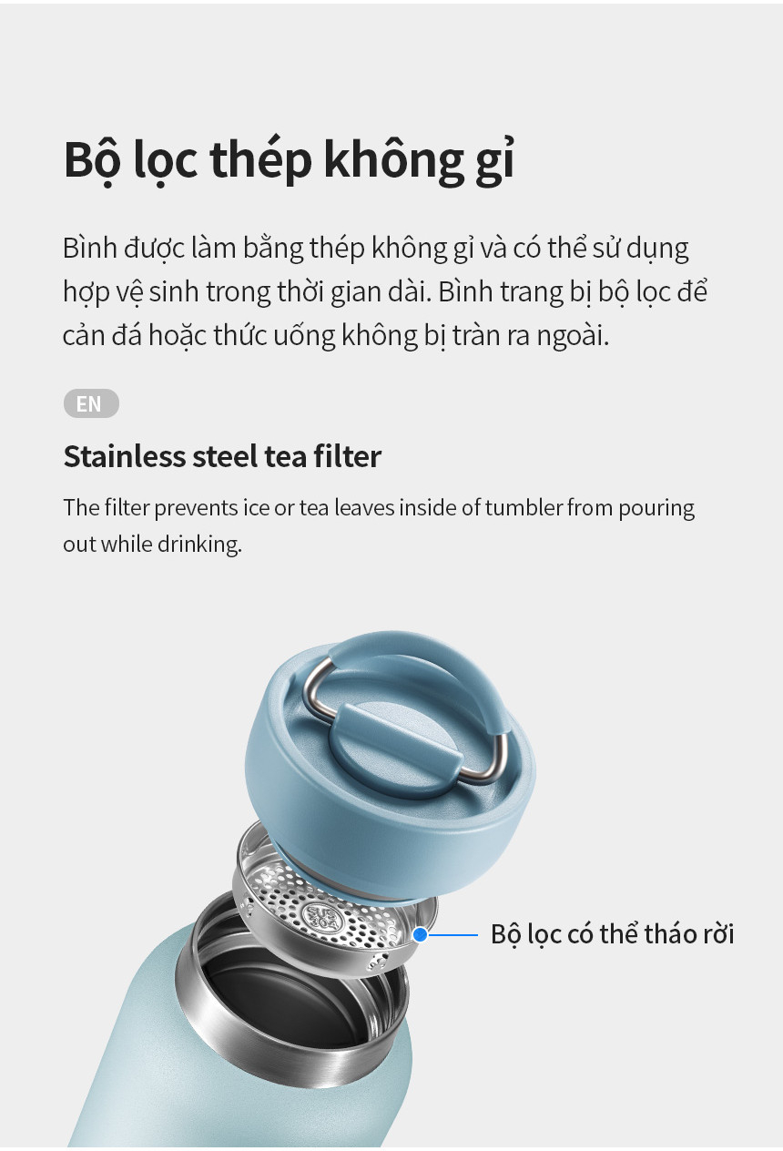 Bộ lọc giúp cho đá bên trong cốc không bị tràn ra ngoài khi uống