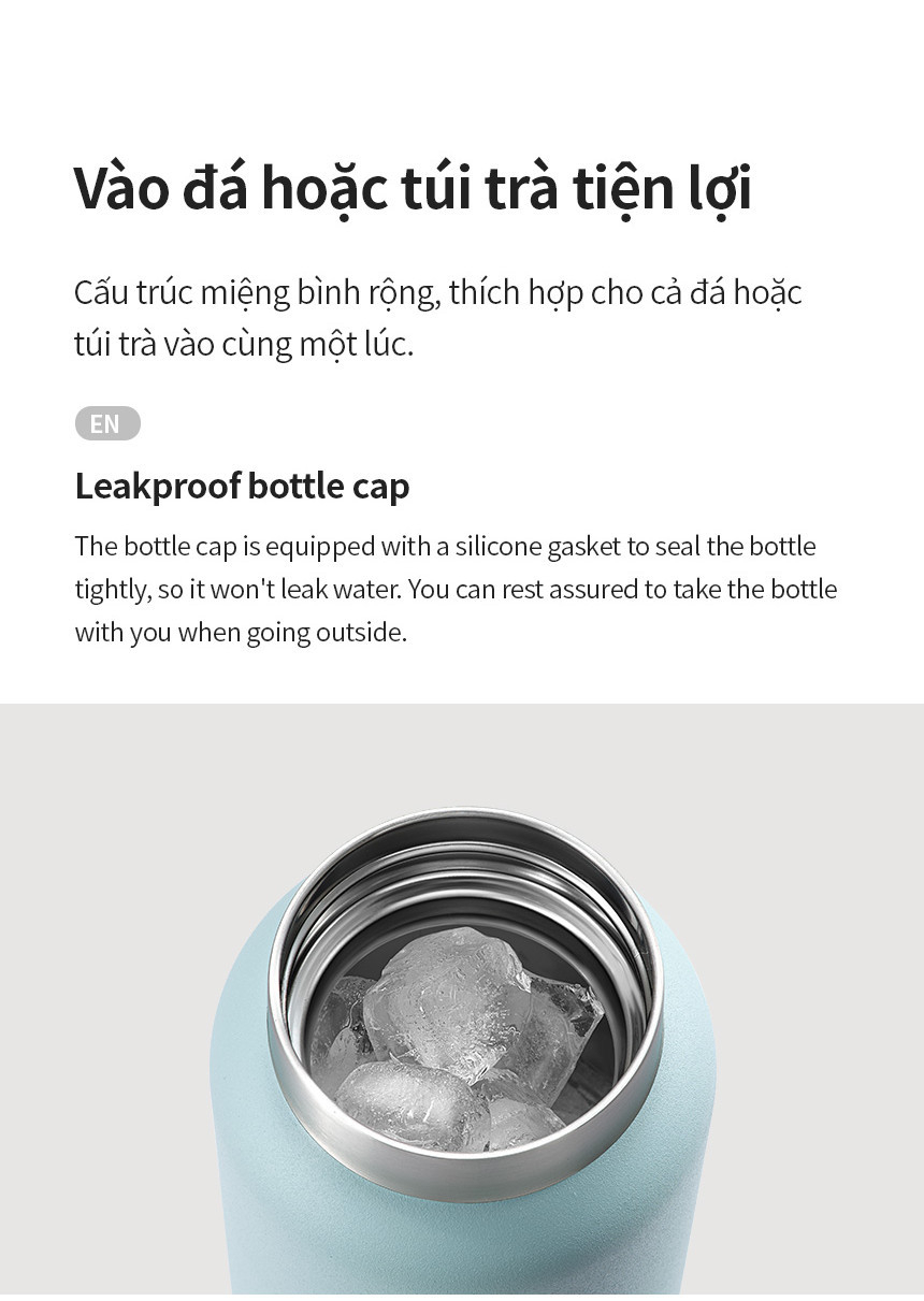 Bình với thiết kế phần miệng rộng giúp bạn thưởng thức đồ uống với đá viên một cách trọn vẹn và vệ sinh bình dễ dàng hơn.