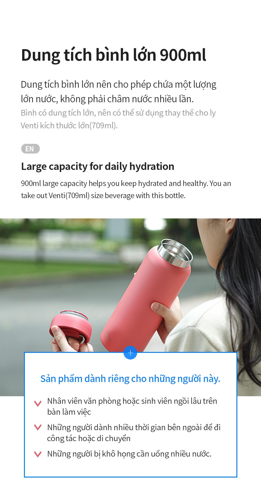 Dung tích lớn tận 900ml, bạn không cần phải châm nước nhiều lần trong ngày
