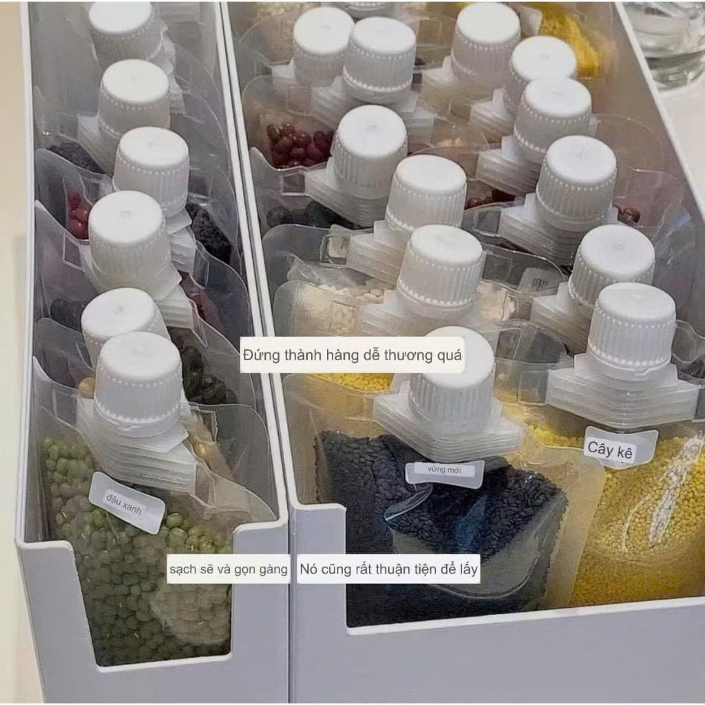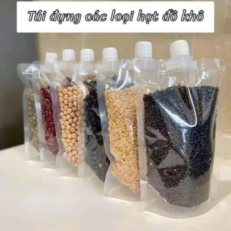 - Túi có nắp vặn vô cùng tiện lợi, chắc chắn trong việc lưu trữ ngũ cốc, dầu ăn,...