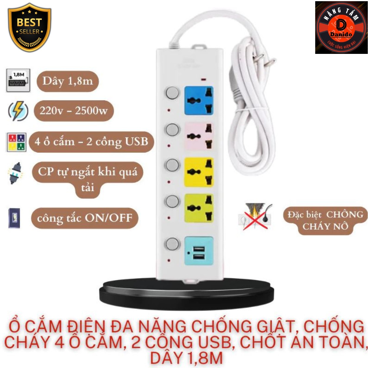 Mua Ổ Cắm Điện Công Suất 2500W Có Chốt An Toàn Tiện Lợi, Chính Hãng, Ổ Cắm Điện USB Đa Năng Cao Cấp Chống Giật Dây Dài 0.9m – 1.1m và 1.8m giá rẻ nhất ở đâu?D Danido