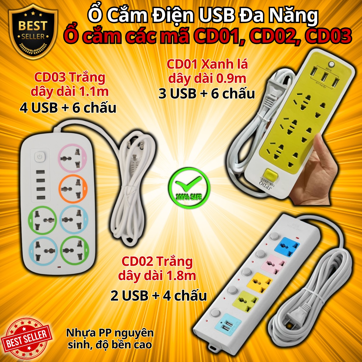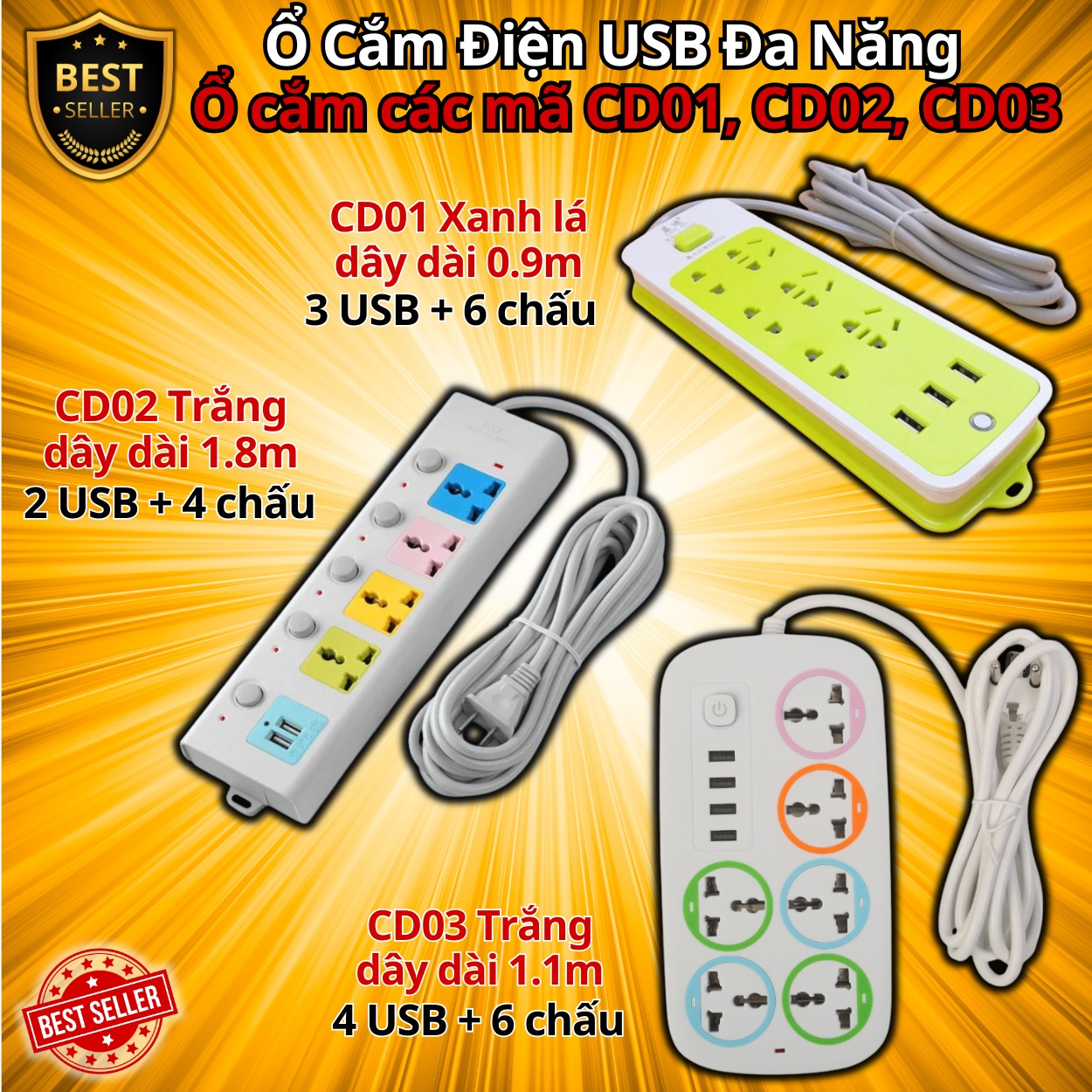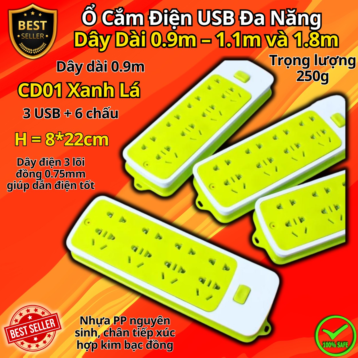 Ổ Cắm Điện USB Đa Năng Cao Cấp Chống Giật Dây Dài 0.9m – 1.1m và 1.8m
