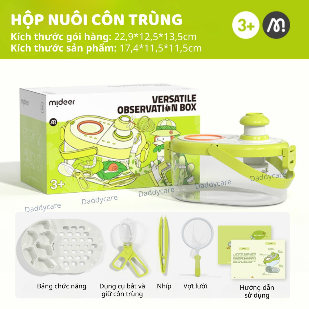 Hộp nuôi côn trùng Mideer giúp bé quan sát thế giới tự nhiên một cách sinh động! Với thiết kế đa chức năng, ống kính HD kép, góc nhìn 360 độ và các ngăn phân chia thông minh, hộp nuôi này cho phép bé tìm hiểu về côn trùng an toàn và thú vị. Khơi dậy niềm đam mê khoa học và khám phá ngay từ nhỏ!