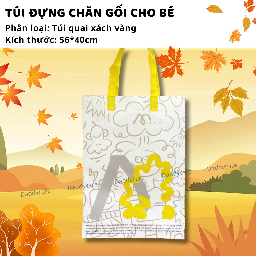 - Túi bạt vàng: 56 cm x 40 cm ( phù hợp đựng chăn gối đi học, các vật dụng hàng ngày cho bé )