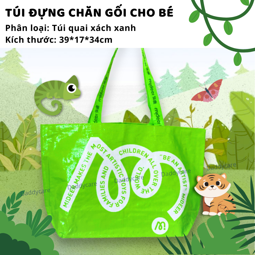 - Túi lớn hơn để đựng chăn gối cho bé đi học mầm non, đựng sách, đồ dùng học tập, hoặc quần áo trong các chuyến đi.