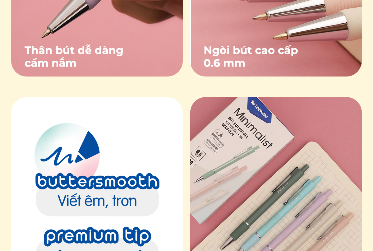 Nhập mã TECKITKBD FREESHIP 20k cho đơn 0đ tại Tiki.Vn Giới thiệu Bút gel B - Minimalist Butter Gel Thiên Long - Premium tip - Mực Xanh - Màu thân ngẫu nhiên
