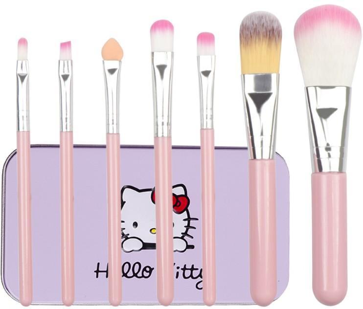 Bộ cọ trang điểm Hello Kitty 7 cây trong hộp xinh xắn, lông cọ mềm với màu hồng cực dễ thương. Hộp cọ thiết kế nhỏ gon dễ dàng bỏ túi mang theo đi học, đi làm, đi chơi, du lịch,…