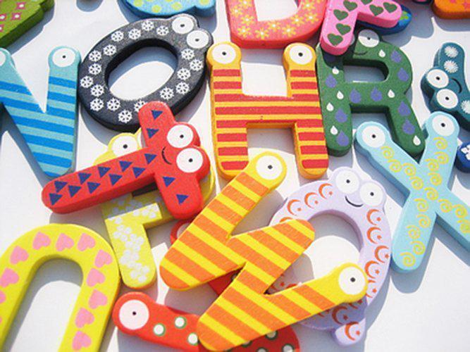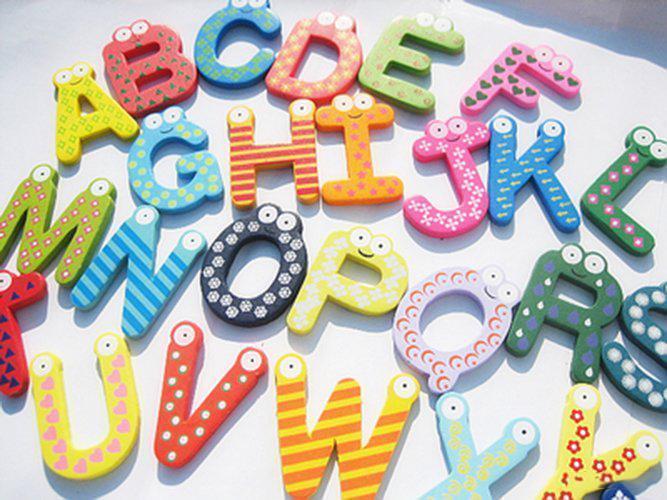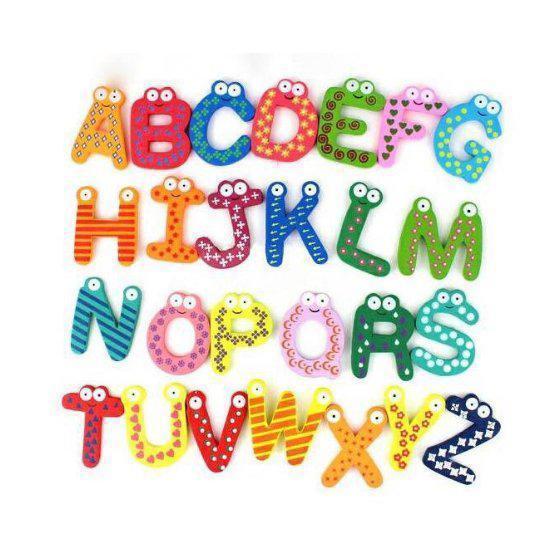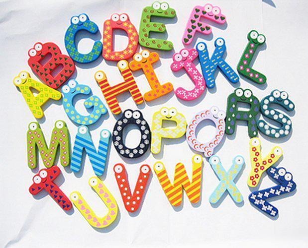 Bộ 26 chữ cái có nam châm hít làm từ gỗ ép nam châm rất an toàn cho các bé vui chơi.