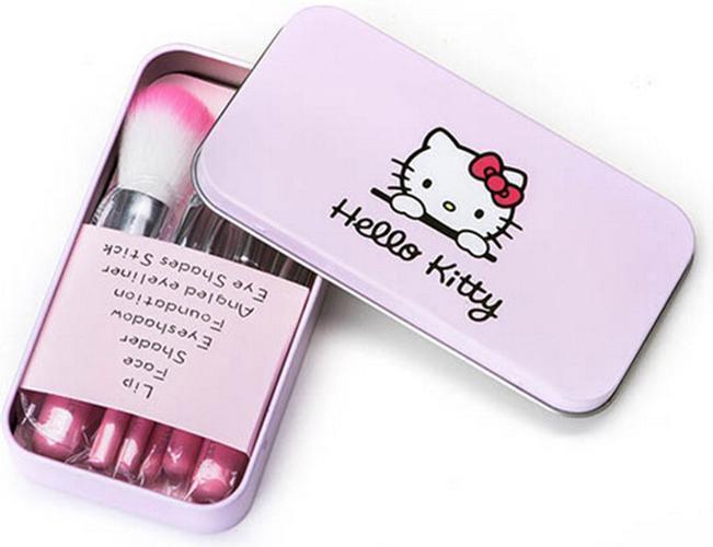 Bộ cọ trang điểm Hello Kitty 7 cây trong hộp xinh xắn, lông cọ mềm với màu hồng cực dễ thương. Hộp cọ thiết kế nhỏ gon dễ dàng bỏ túi mang theo đi học, đi làm, đi chơi, du lịch,…