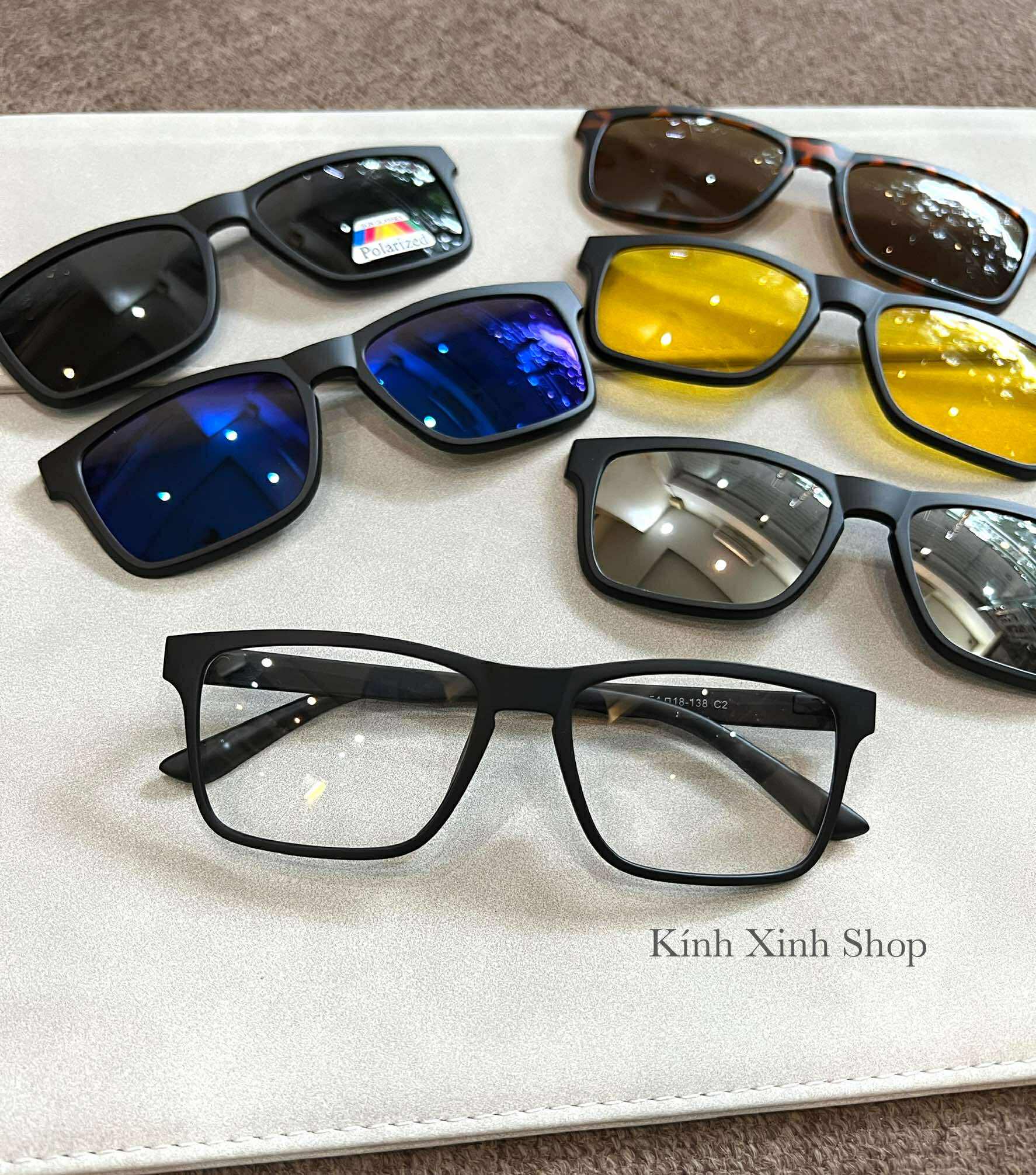Mua Kính Mắt Thời Trang Cận Râm, Gọng Kính Cận Bộ 5 Tròng Râm 6in1 Mắt Vuông Unisex Cho Nam Nữ giá rẻ nhất ở đâu?Giới thiệu Kính Mắt Thời Trang Cận Râm, Gọng Kính Cận Bộ 5 Tròng Râm 6in1 Mắt Vuông Unisex Cho Nam Nữ