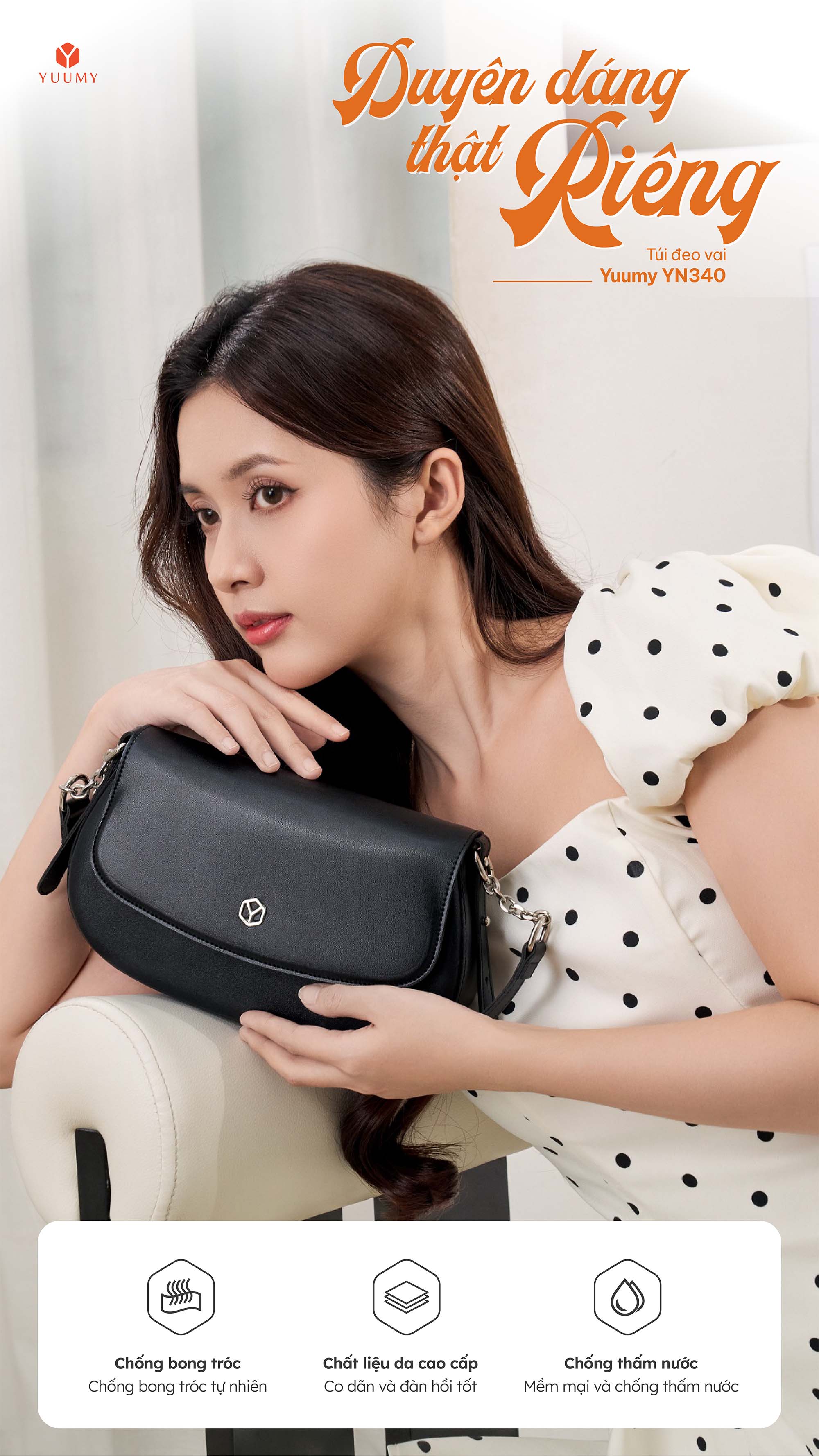 Túi đeo vai dáng cong Yuumy Seasand YN340 thiết kế dáng cong mềm mại kết hợp phần nắp gập tối giản và điểm nhấn dây xích kim loại hai bên vừa tôn lên sự nữ tính vừa tạo nét cá tính. Bề mặt da tổng hợp mềm mịn, dễ dàng vệ sinh và giữ form tốt sau thời gian dài sử dụng. Ngăn chính có thể đựng vừa điện thoại, ví mini, son, phấn, thẻ và những vật dụng nhỏ cần thiết mỗi ngày. Chiếc túi nhỏ xinh nhưng đủ sức làm điểm nhấn cho cả set đồ – bởi vì “đúng gu” luôn là yếu tố tạo nên sự cuốn hút.