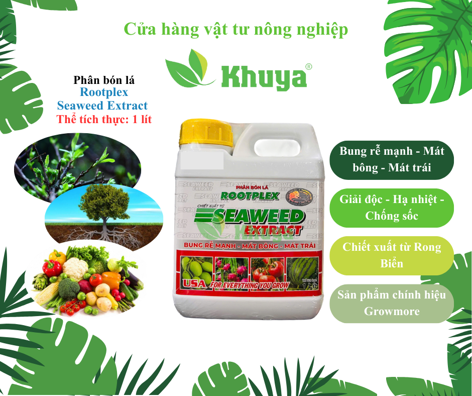 Phân bón lá Growmore Root Plex Seaweed Extract Rong biển USA 1 lít