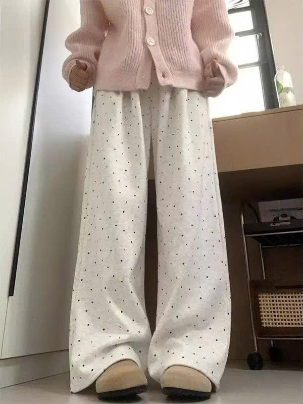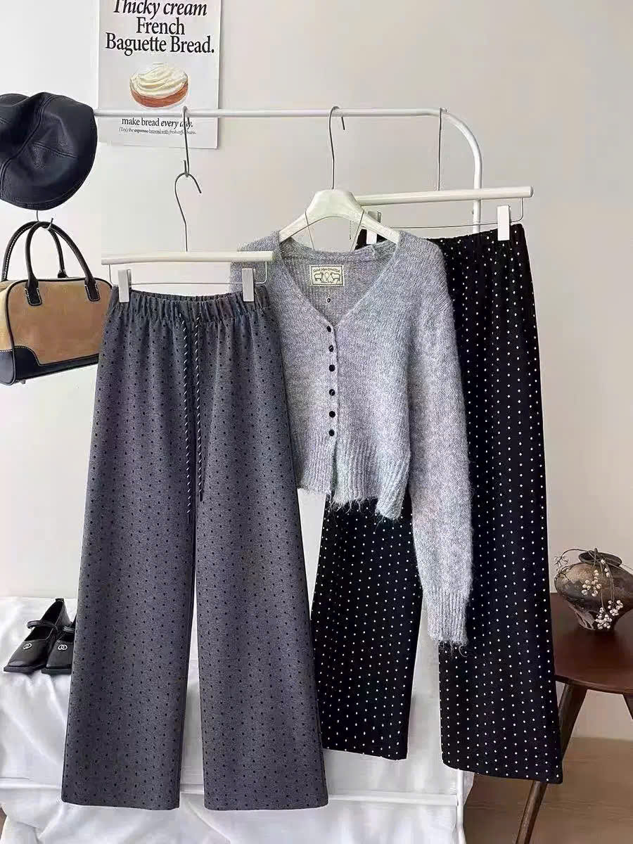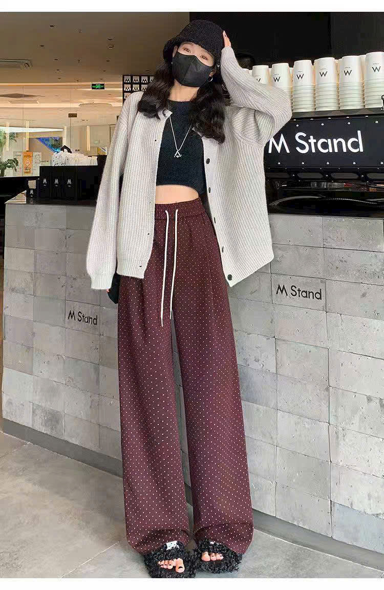 Quần suông ống rộng ống đứng chấm bi phong cách Hàn Quốc từ 40-60kg dành cho nữ