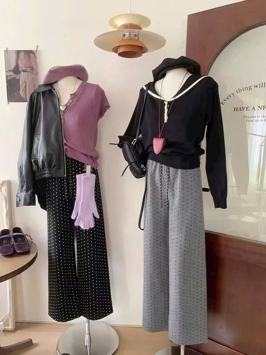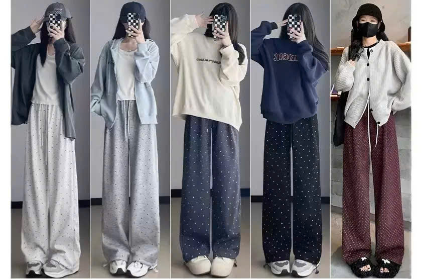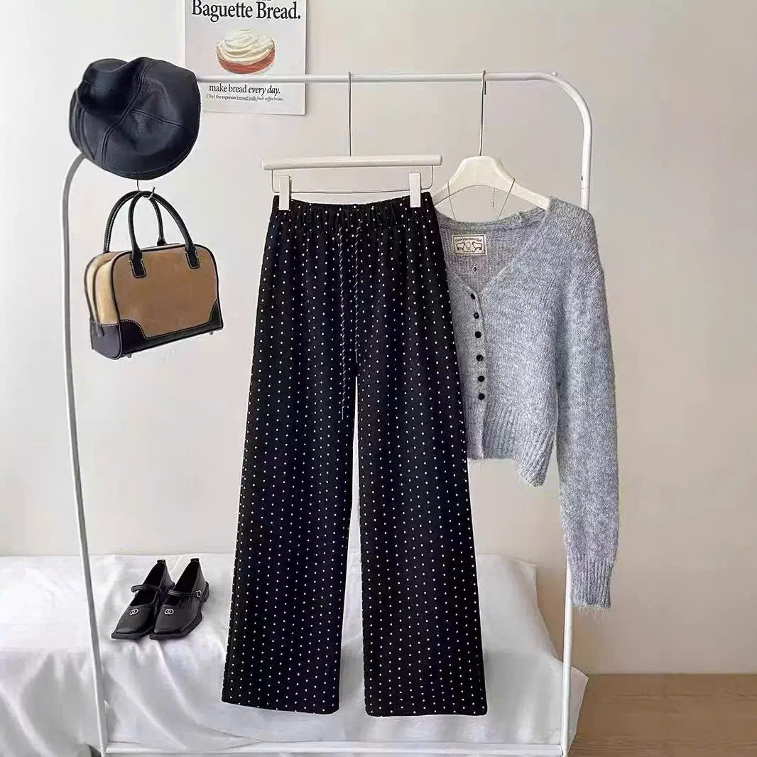 Giới thiệu Quần suông ống rộng ống đứng chấm bi phong cách Hàn Quốc từ 40-60kg dành cho nữ