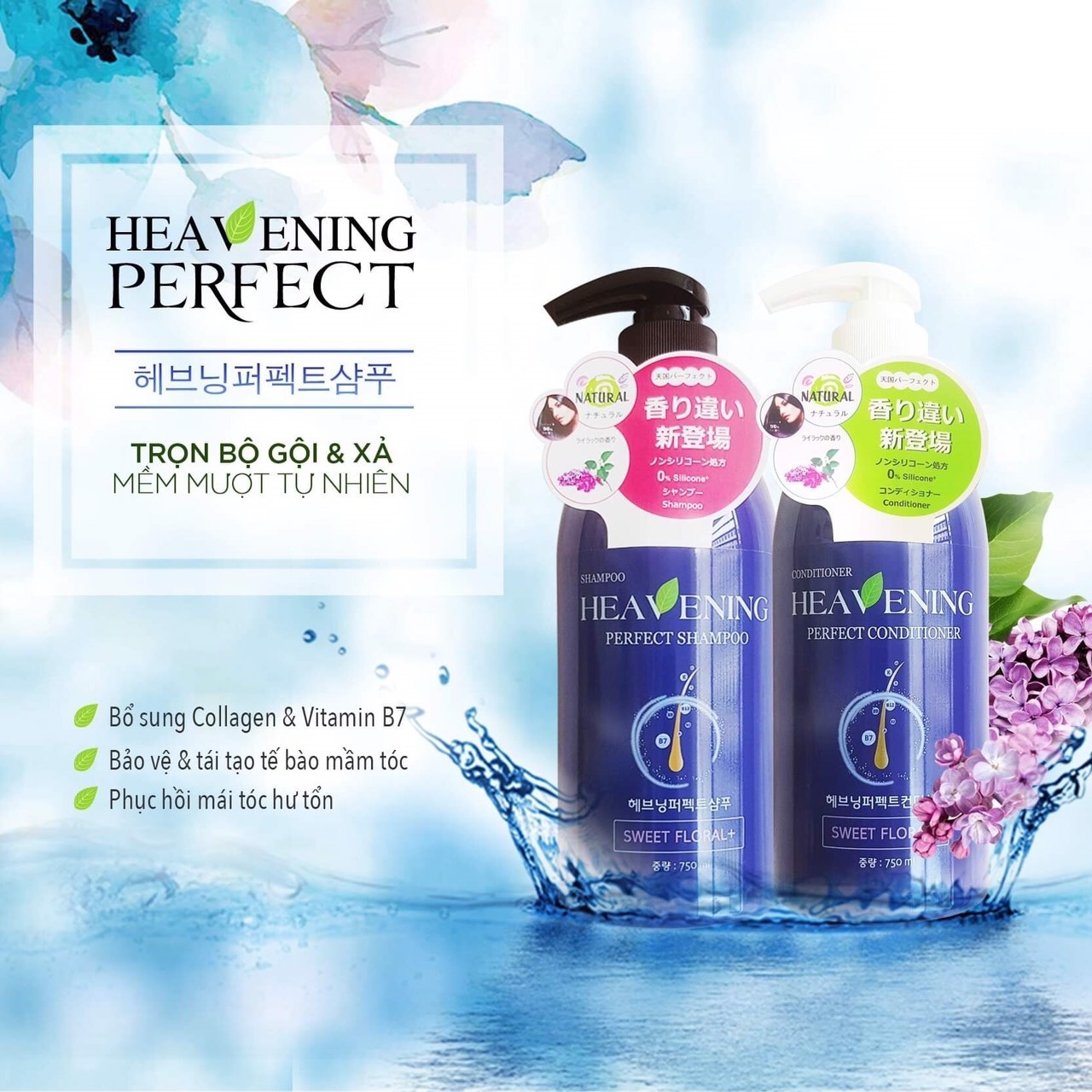 Bộ chăm sóc tóc dưỡng chất suôn mượt Heavening Perfect ( set 01 gội & 01 xả )
