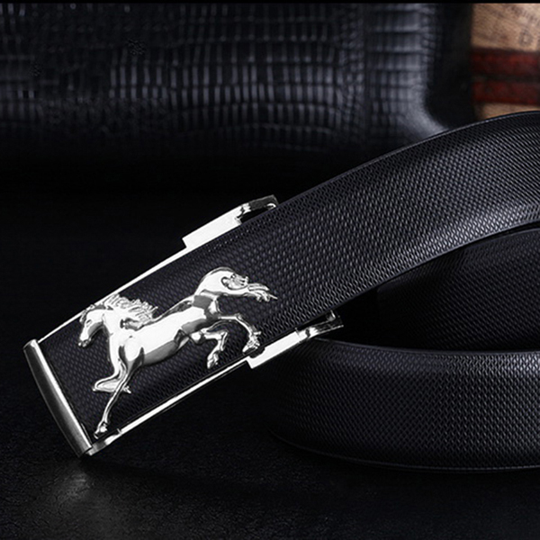 Giới thiệu Dây nịt nam hình con ngựa DN35 - Dây Đen, Mặt Bạc