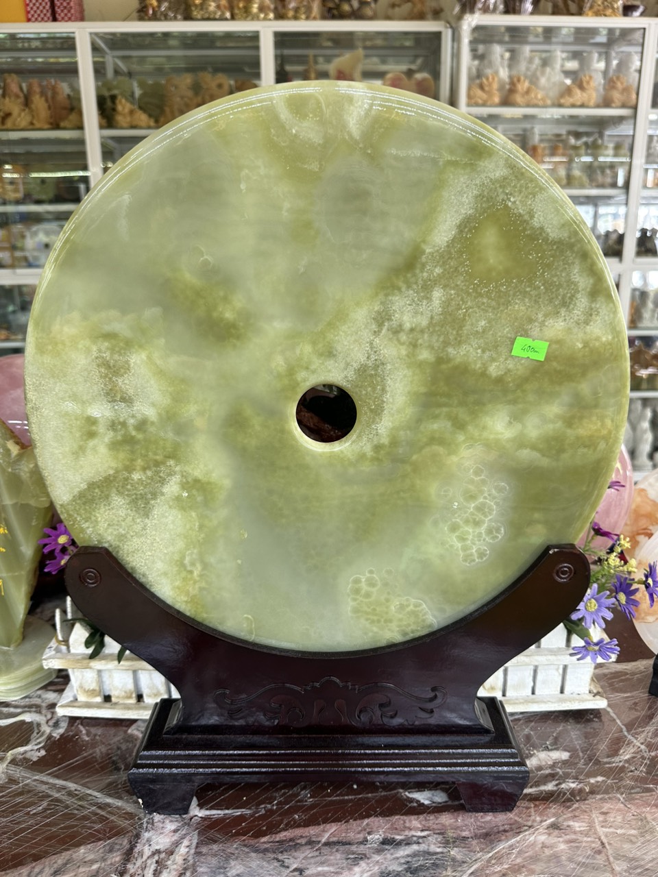 Giới thiệu Đồng điếu (đồng tiền ) phong thủy đá ngọc Onyx xanh nhạt - Đường kính 40 cm