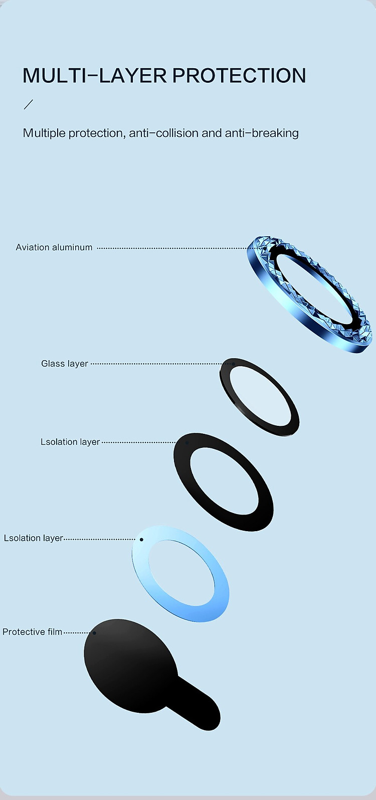 Bộ miếng dán kính cường lực đính đá bảo vệ Camera cho iPhone 12 Pro Max hiệu Kuzoom Lens Ring thiết kế hoàn toàn mới, tỉ mỉ đến từng chi tiết nhỏ, được cấu tạo bới 5 lớp khác nhau.